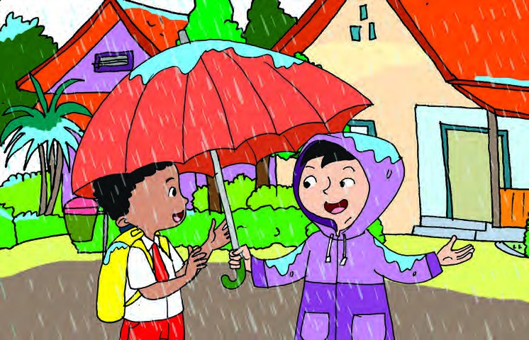 Edo : Wah, kamu baik sekali Beni. Terima kasih sudah meminjamkan payungmu untukku.